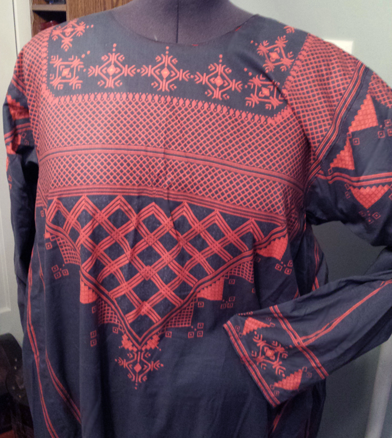 Below is a finished kaftan. It can be constructed by ordering 2 yards of cotton for the sleeves here,