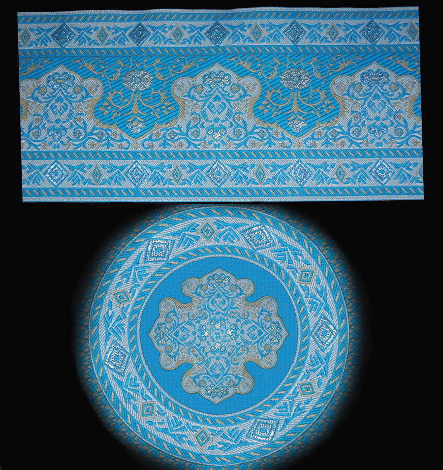 This fabric can be purchased here , a matching fabric with a tiraz for the sleeve here